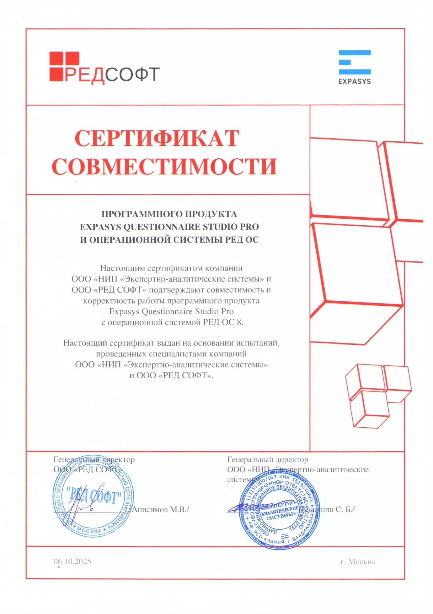 Expasys и РЕД СОФТ подтвердили совместимость своих решений в ходе тестирования.